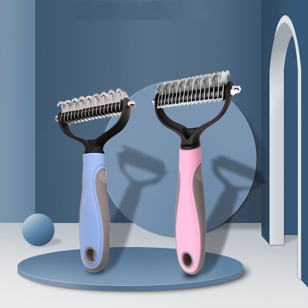 Elevate your pet's grooming routine with our professional-grade, dual-sided grooming rake designed to tackle knots and reduce shedding effortlessly, ensuring a happy, healthy coat for your furry friend.